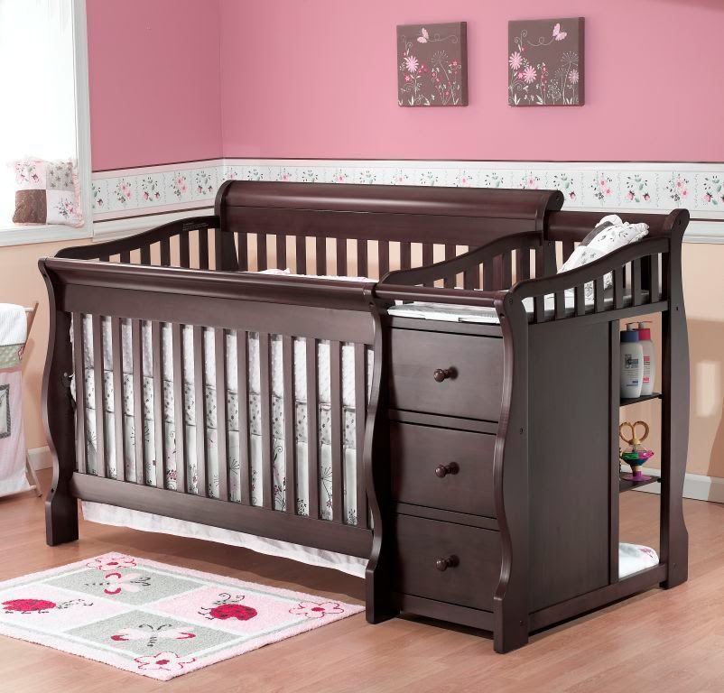 La primera que vi, por supuesto, fue la que tienen mis amigos y que me recomendaron, de la marca Sorelle. Convertible en cuna cambiador, mini-cama, banco y cama de adulto con mesilla.