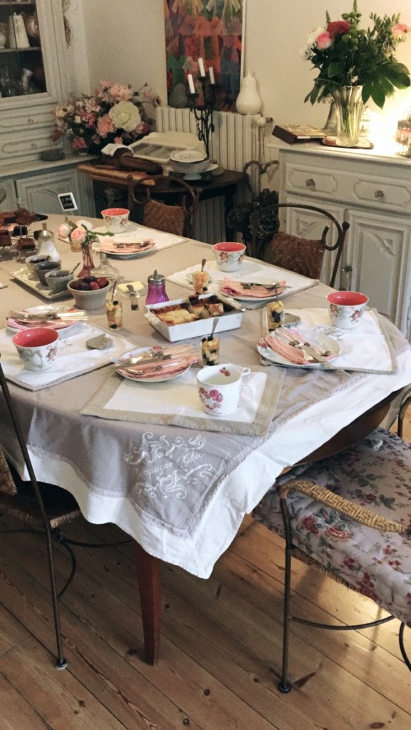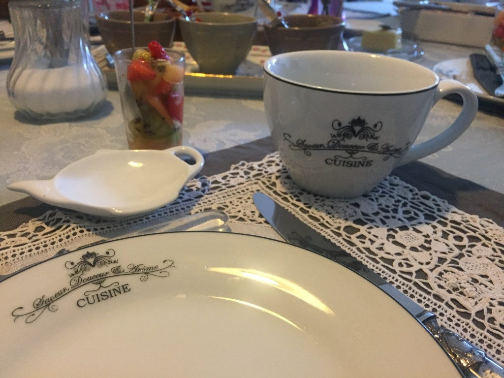Por la mañana se levanta muy temprano para preparar un magnífico desayuno completamente casero. Brioches recién horneados (los que me seguís por instagram los habréis visto en mis stories porque los hice hace poco y muchos me habéis pedido la receta), vasitos de yogur, fruta y granola casera, zumo de naranja recién exprimido, dulces caseros típicos de la zona, mermeladas caseras (la de ruibarbo era mi favorita), etc.