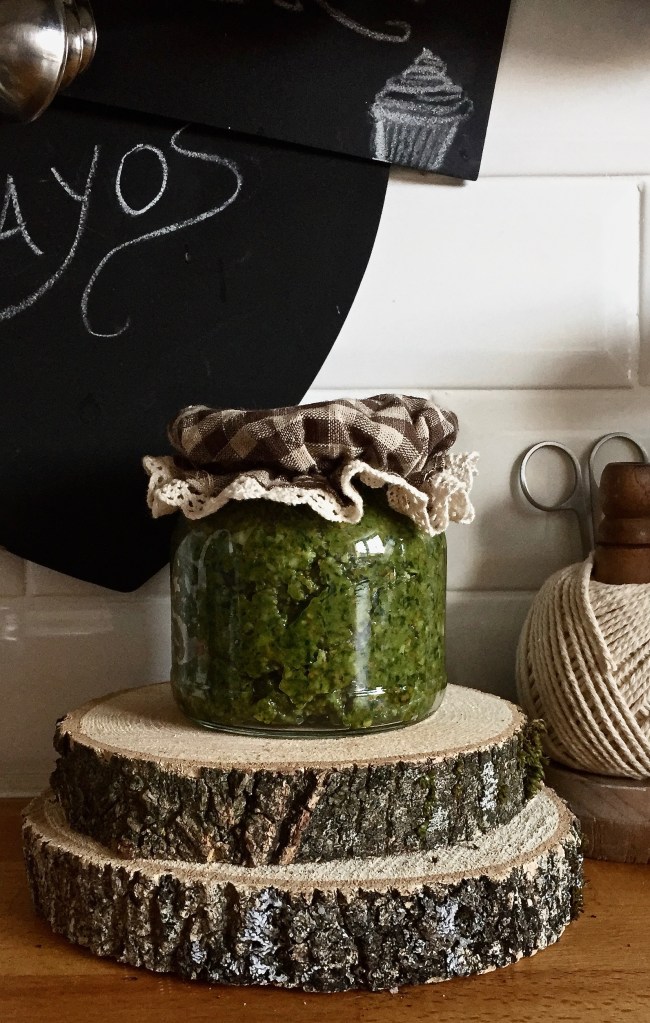 Al igual que la mantequilla de hierbas, el pesto es una receta que viene bien tenerla hecha y guardada en la nevera. Es importante que esté bien cubierto de aceite para que aguante sin problemas. Quedará buenísimo con un plato de pasta (y la pasta con pesto es una guarnición fantástica para un filete de pollo a la plancha), en una tostada con queso fresco, en una ensalada de pasta, en una milhojas de verduras, con mozzarella fresca, como aliño de unos tomates troceados… Como podéis ver, en un sinfín de opciones.